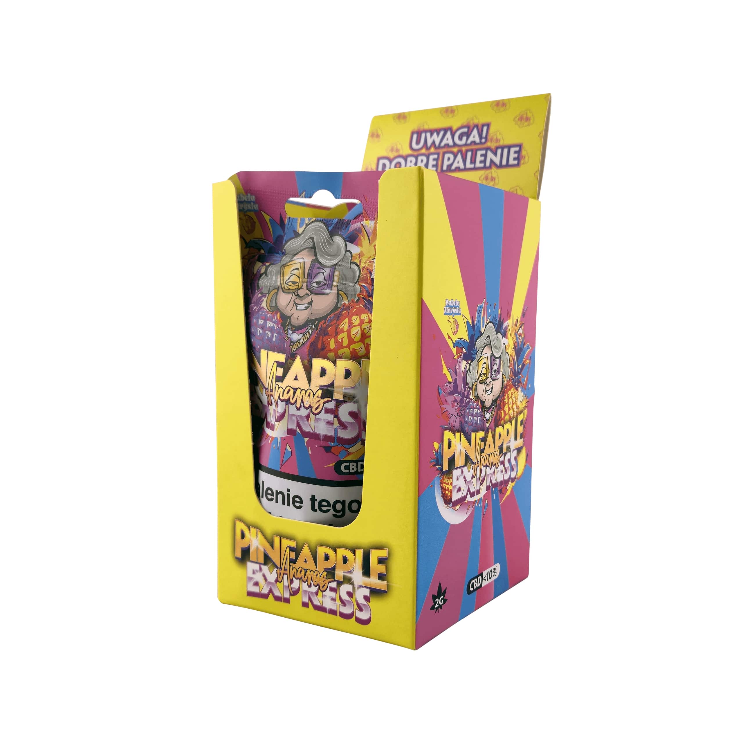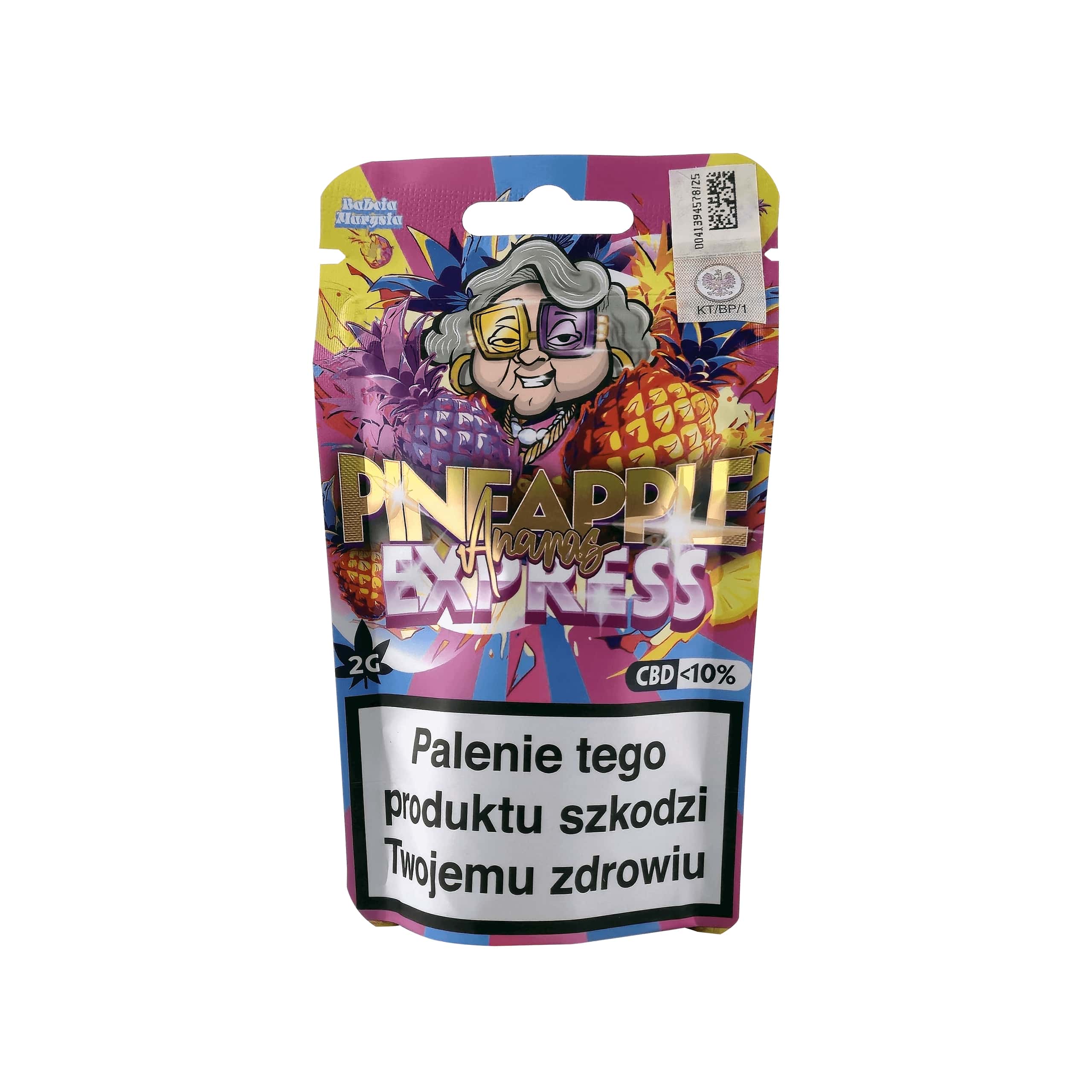 Babcia Marysia Pineapple Express CBD to energetyzuj膮ce po艂膮czenie soczystego, s艂odko-kwaskowego ananasa z naturaln膮 moc膮 suszu CBD. Intensywny, tropikalny aromat pobudza zmys艂y, a CBD wspiera relaks, redukcj臋 napi臋cia i dobry nastr贸j. Idealny wyb贸r dla tych, kt贸rzy szukaj膮 owocowej 艣wie偶o艣ci i harmonii w jednym.