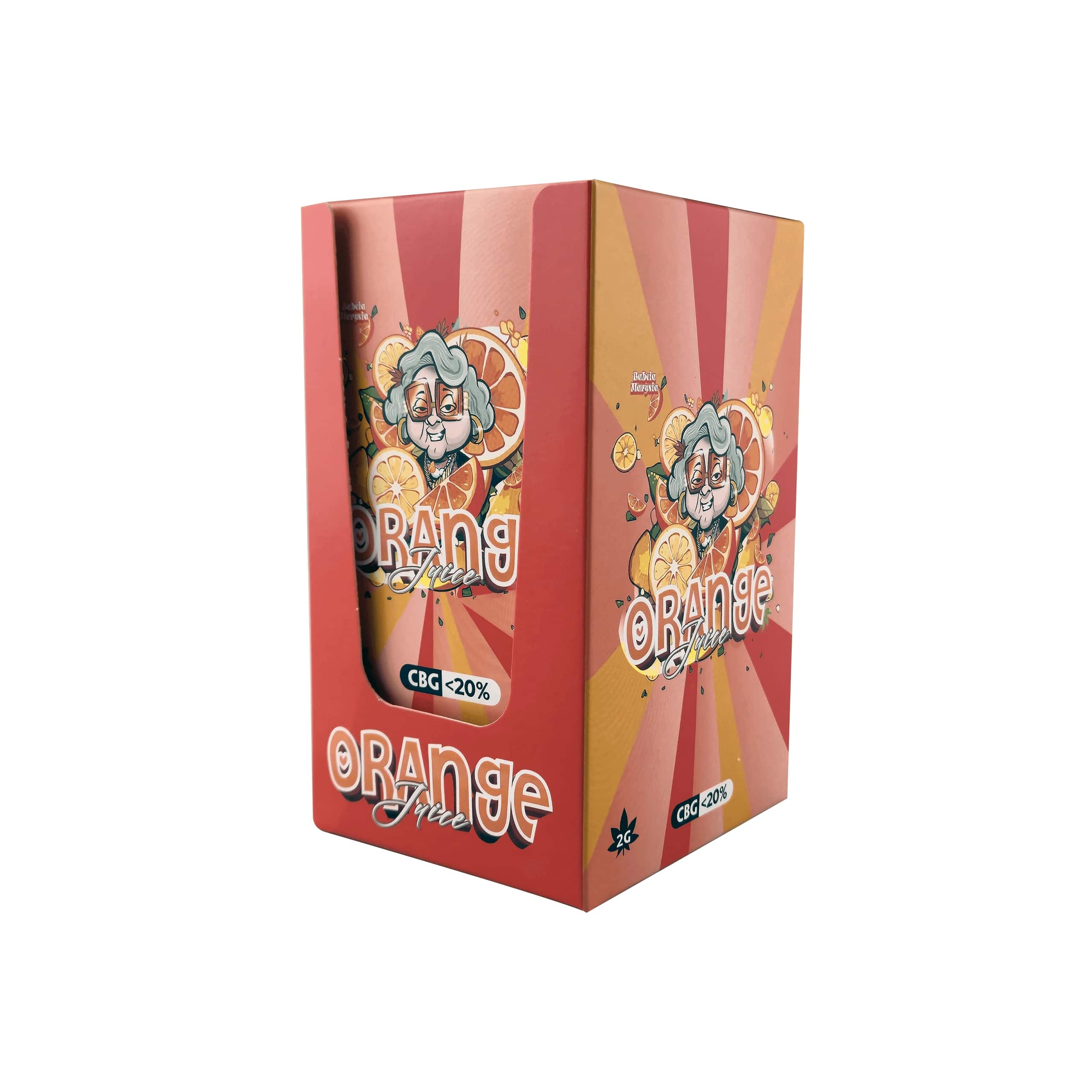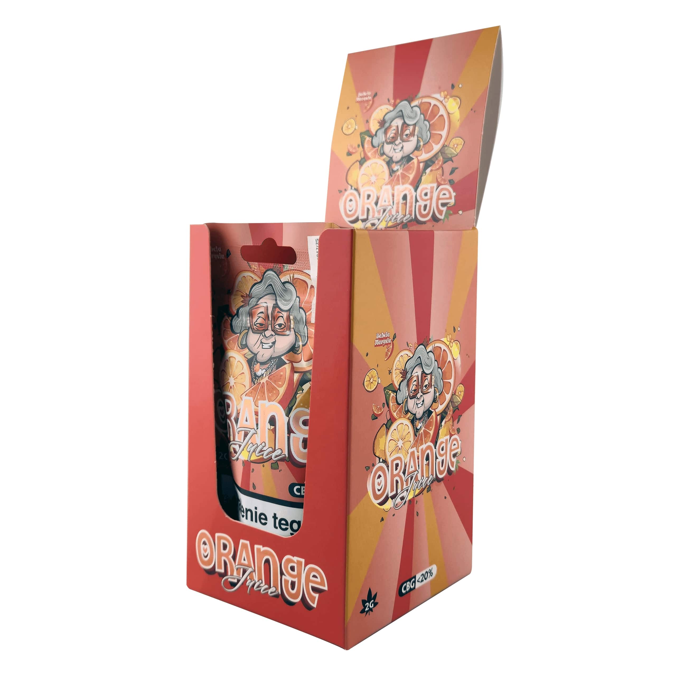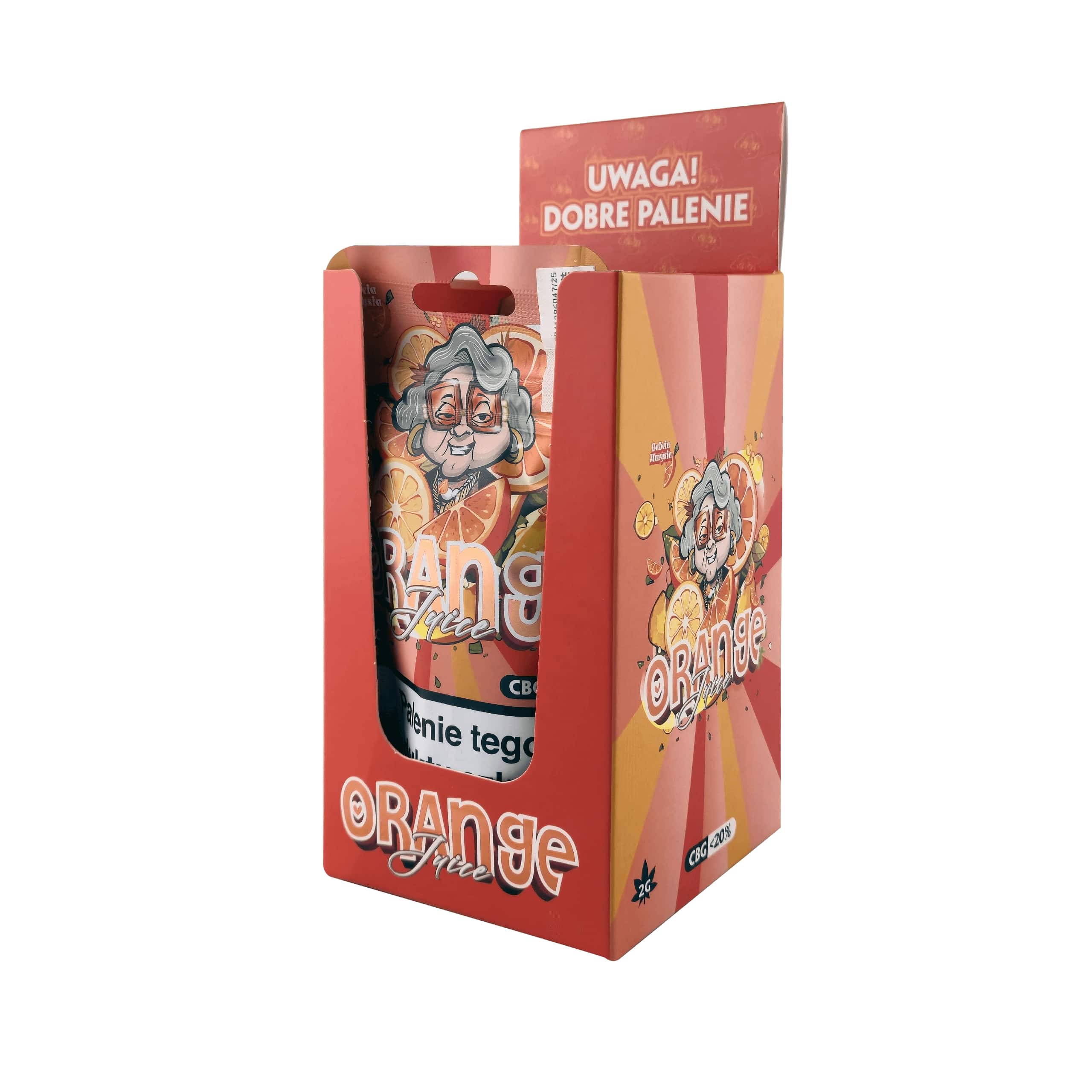 Апельсиновий сік "Бабуся Марися" CBG це цитрусова свіжість, яка приховує в собі унікальний потенціал CBG - рідкісного канабіноїду, який називають "матір'ю всіх канабіноїдів". Ніжний апельсиновий аромат додає енергії та легкості, в той час як CBG підтримує ясність розуму, концентрацію та природний баланс організму. Це ідеальний вибір для тих, хто шукає більше, ніж розслаблення - вони хочуть відчути чисту гармонію і зосередженість.